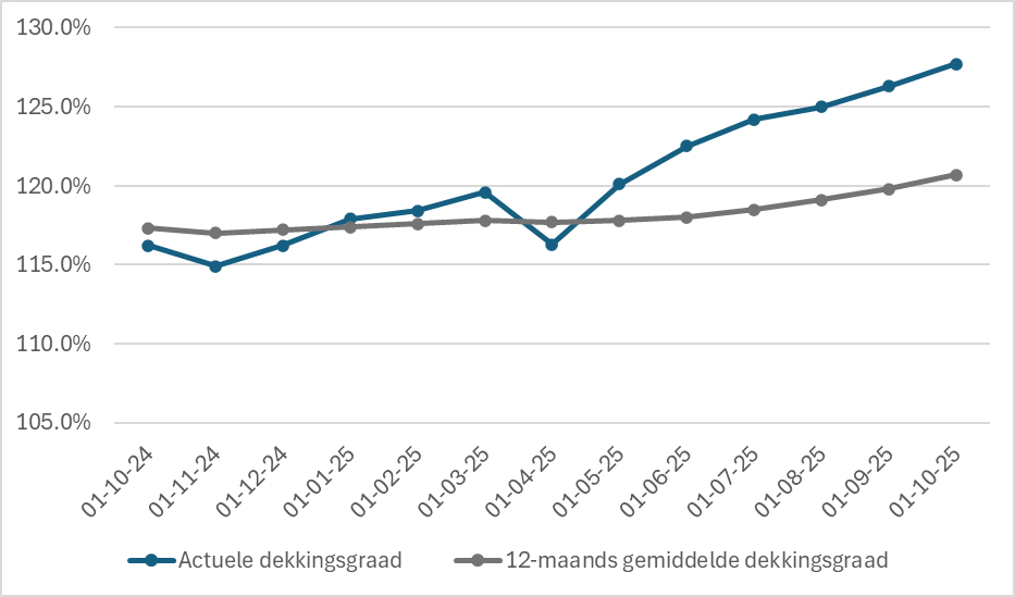 Door de sterk verbeterde dekkingsgraden van pensioenfondsen is het de vraag of de afbouw van de renteafdekking rond 1 januari 2026 nog daadwerkelijk zo omvangrijk was als eerder werd aangenomen. In het nieuwe stelsel wordt de renteafdekking namelijk bepaald op basis van het vermogen in plaats van de verplichtingen, waardoor een hoge dekkingsgraad automatisch leidt tot een lager renteafdekkingspercentage ten opzichte van het vermogen (bij een onveranderde portefeuille). Een belangrijk deel van de verwachte afbouw kan daarmee al impliciet zijn gerealiseerd. Dit roept de vraag op of fondsen hun renteafdekking nog actief en in grote stappen zullen verminderen. Daarnaast kan de gestegen dekkingsgraad voor sommige pensioenfondsen ook hebben betekent dat de noodzaak om de dekkingsgraad vlak voor de transitie actief te beschermen via een hoge rentafdekking mogelijk is afgenomen. De uiteindelijke markteffecten zouden daardoor minder groot en meer geleidelijk kunnen uitvallen dan aanvankelijk verwacht.